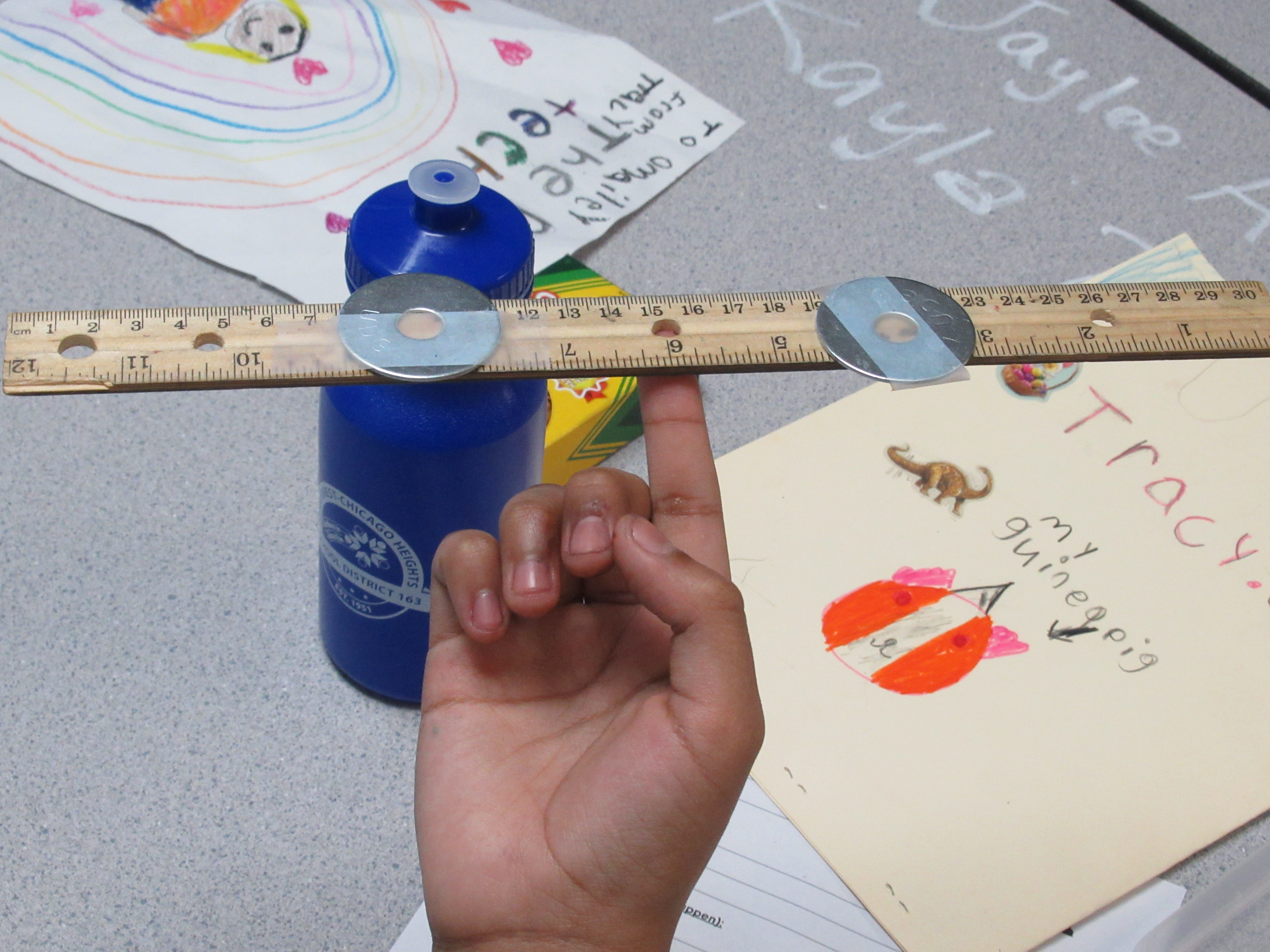 Materials: rulers, tape, scissors, clothes pins, classroom/ household/ found items