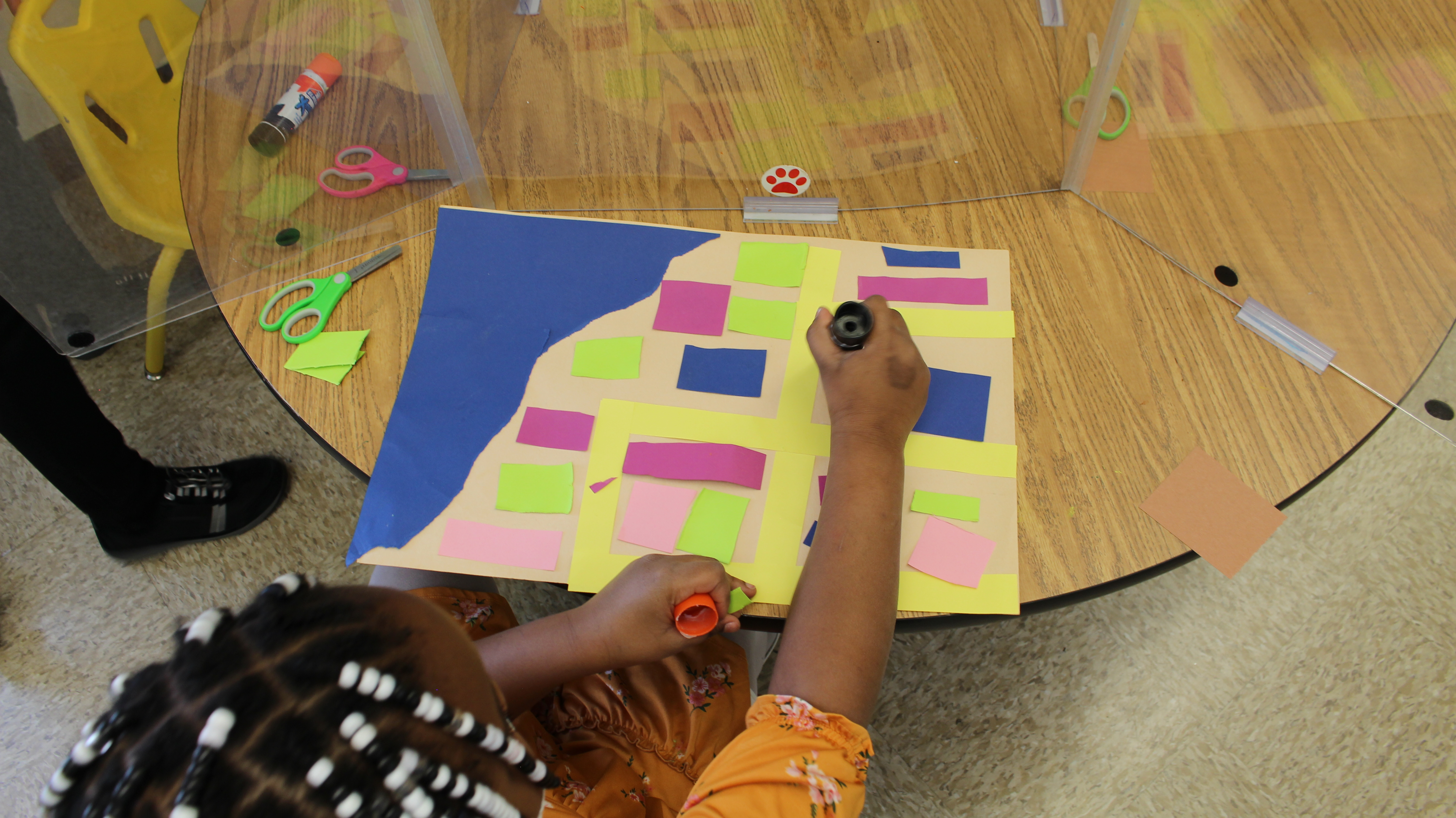 Materials: construction paper, scissors, glue, foam tabs