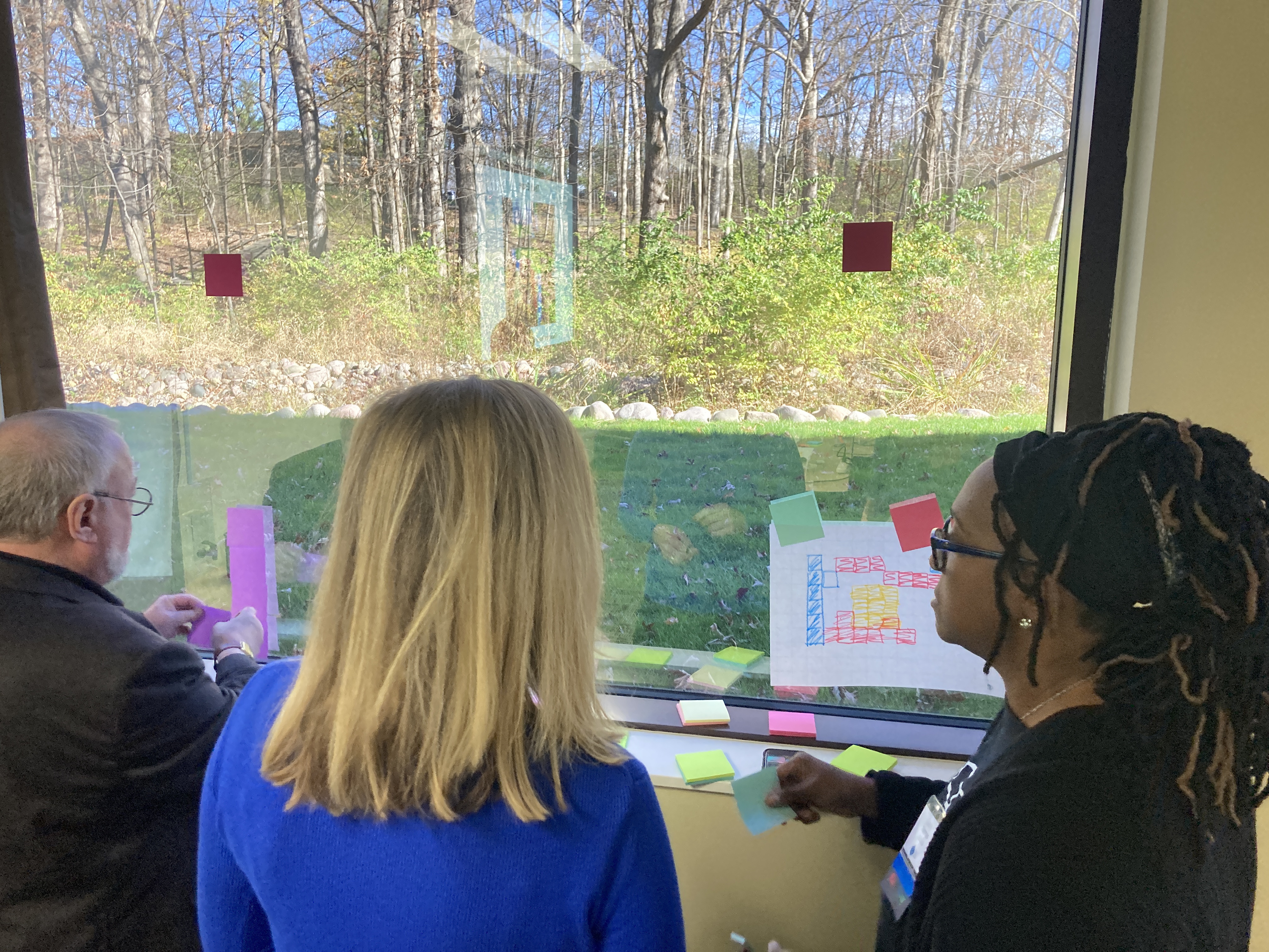 “STEAM Teacher Andrea Mele and CAPE Teaching Artist David Sprecher guide IAEA participants in creating Symmetry Cities.”